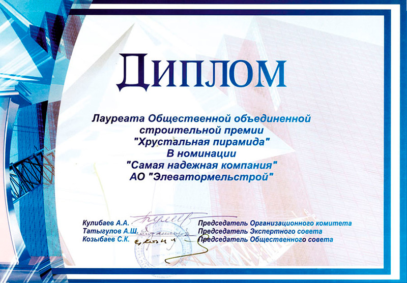 Обладая опытом возведения монолитных элеваторов, компанией было осуществлено строительство 9 и 12 этажных жилых домов, выполненных в монолитном исполнении методом «скользящей опалубки», что позволило значительно сократить сроки строительства жилья и улучшить архитектурную застройку городов Алматы, Тараза, Кзыл-Орды, Уральска.