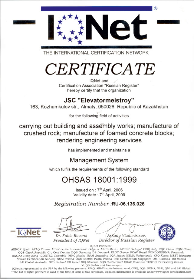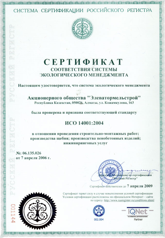 В компании действуют сертифицированные системы менеджмента качества, экологического менеджмента и менеджмента профессиональной безопасности и охраны труда, отвечающие требованиям международных стандартов ИСО 9001:2000, МСО 14001:2004 и OHSAS 18001:1999.