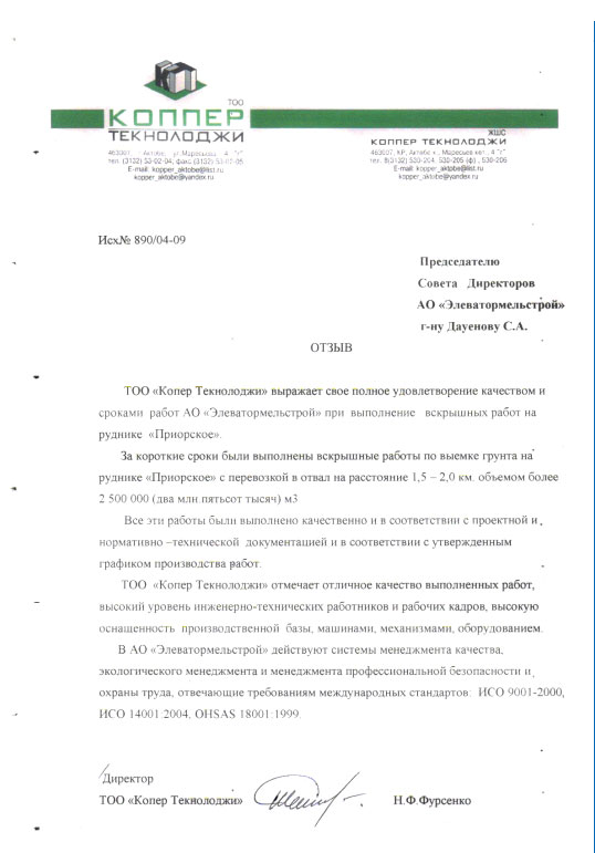 Благодарственные письма